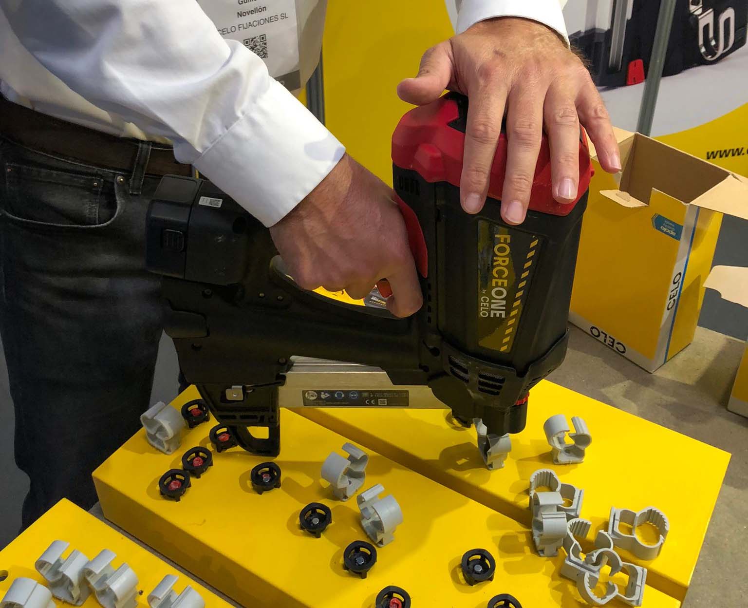 La presencia en la feria EFINTEC de Barcelona 2021 fue todo un éxito, pudiendo estar de nuevo cerca de los instaladores y enseñarles las novedades que el mercado tiene preparado. De la mano de CELO, la clavadora a gas FORCE ONE fue la estrella de su stand. El característico ruido de la herramienta de CELO no dejaba a nadie indiferente y les llamaba a acercarse a descubrir una clavadora a gas con 105 julios de potencia, ligera con 3,6 Kg y ergonómica que te permite ahorrar tiempo en tus instalaciones. La FORCE ONE no viene sola, CELO cuenta con un amplio catálogo de accesorios para que puedas llevar tus instalaciones al siguiente nivel, desde el más sencillo accesorio para sujetar una caja de empalme hasta otro para crear tus propios columpios para fijar un sistema de tuberías. Esta nueva clavadora que probaron los instaladores que asistieron a la feria EFINTEC, está diseñada especialmente para trabajar bajo techo en hormigón y vigas de acero. CELO no solo trajo la clavadora a gas, la empresa líder del sector eléctrico cuenta con un catálogo con más de 5.000 referencias centradas en la calidad y ahorro de tiempo.