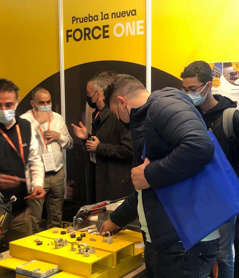 En EFICAM Madrid, CELO contó con la visita de futuros instaladores que valoraron muy positivamente el potencial ahorro que la clavadora a gas FORCE ONE puede aportar al trabajo diario. Ya que no solo promueve el ahorro de tiempo, sino que facilita las instalaciones más pesadas.